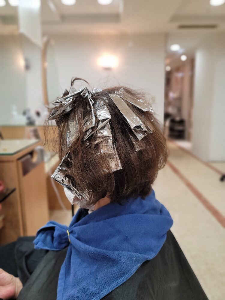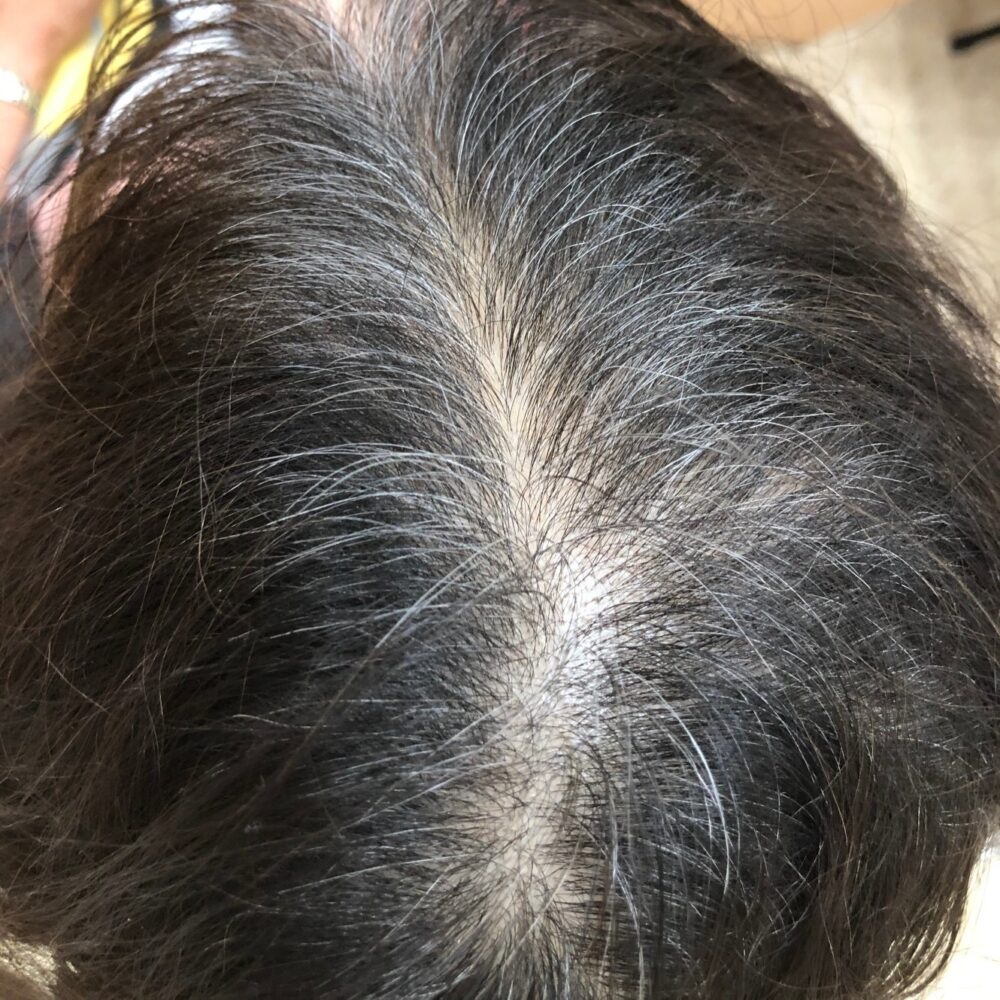 なので、今回は白髪を無理に染めずに目立たないようにカラーすることで頭皮にやさしく、